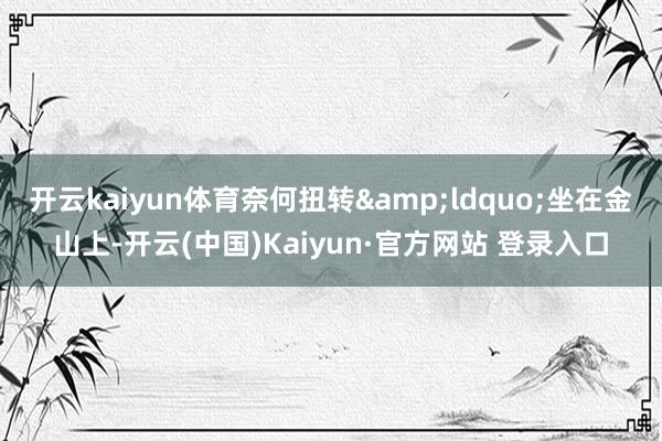 开云kaiyun体育奈何扭转“坐在金山上-开云(中国)Kaiyun·官方网站 登录入口